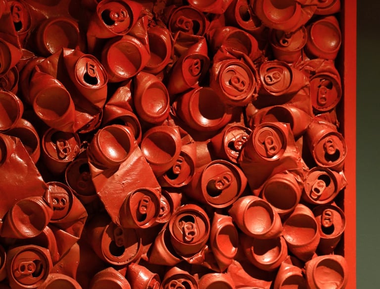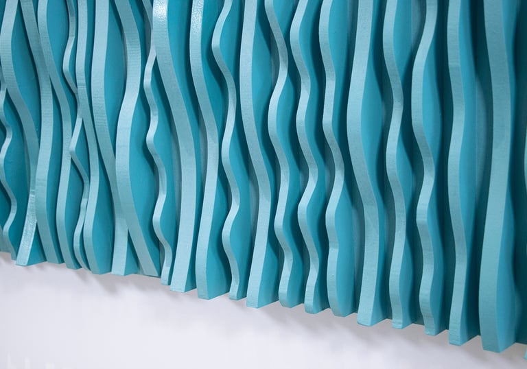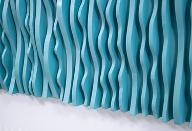 We offer modern, geometric, and abstract paintings, alongside unique wall sculptures crafted from recycled materials, emphasizing sustainability and creativity in every piece.